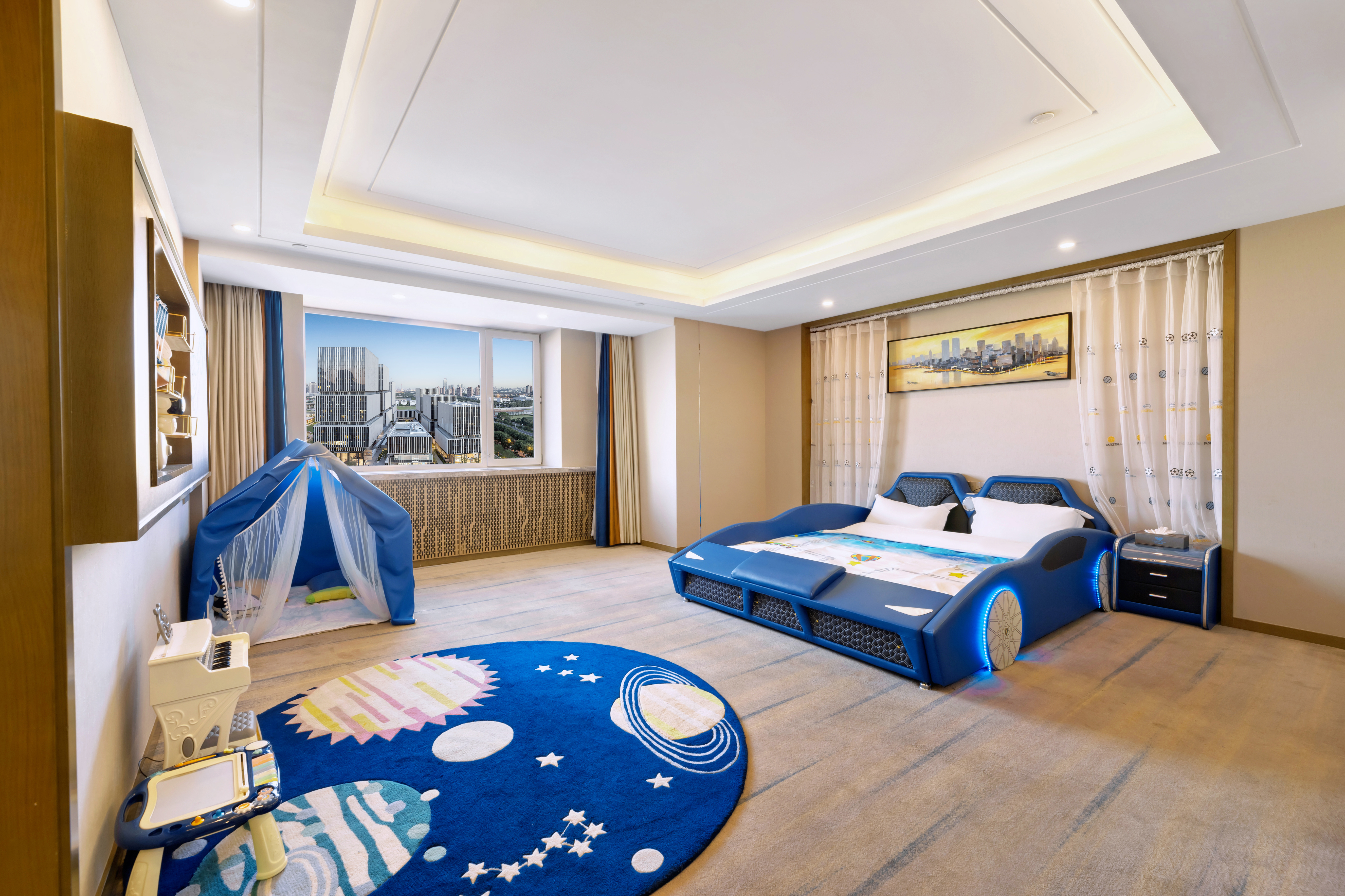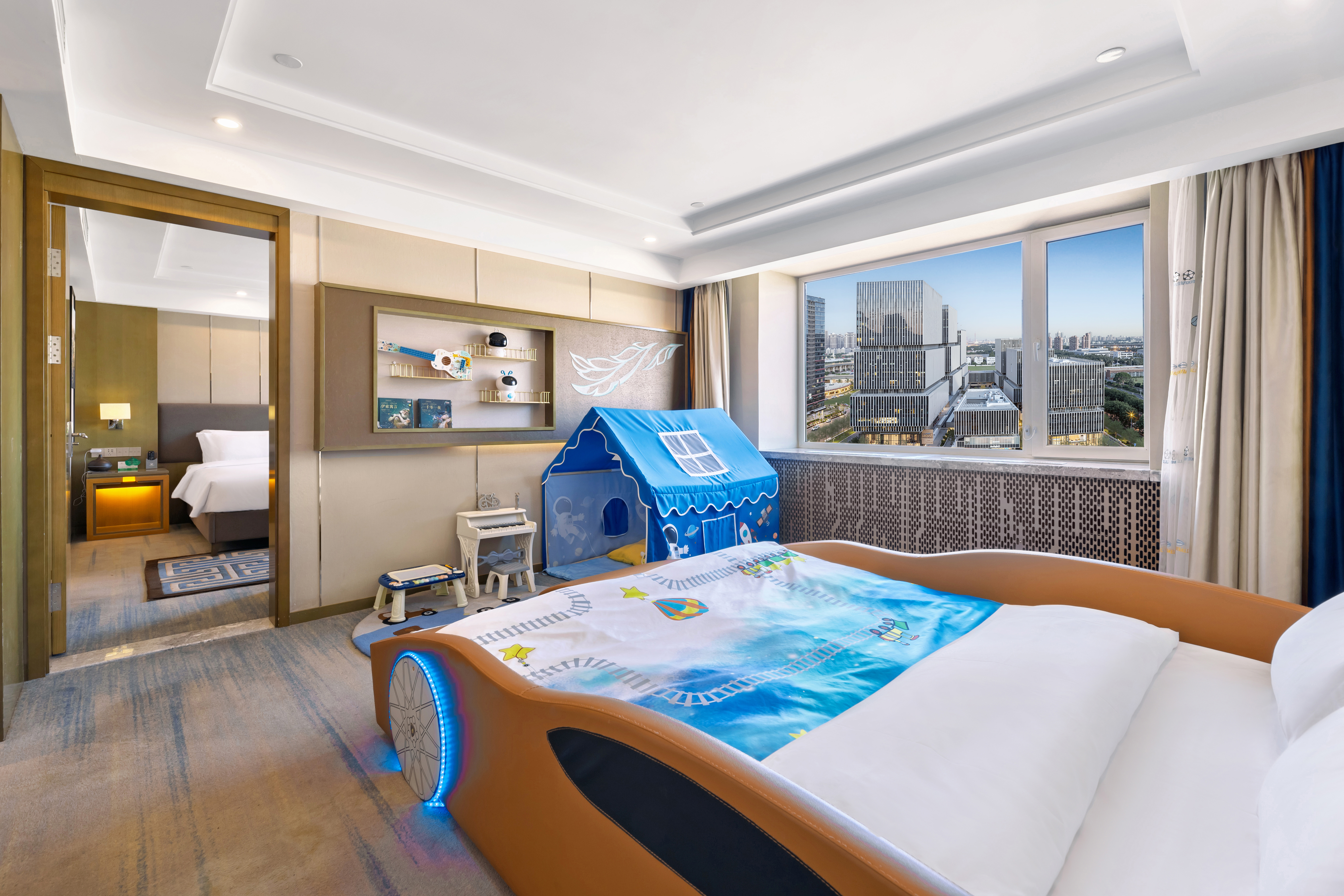 至尊汽车主题亲子套房-露营风帐篷-小童玩具-温润加湿器-双衞浴-双卧隔断门